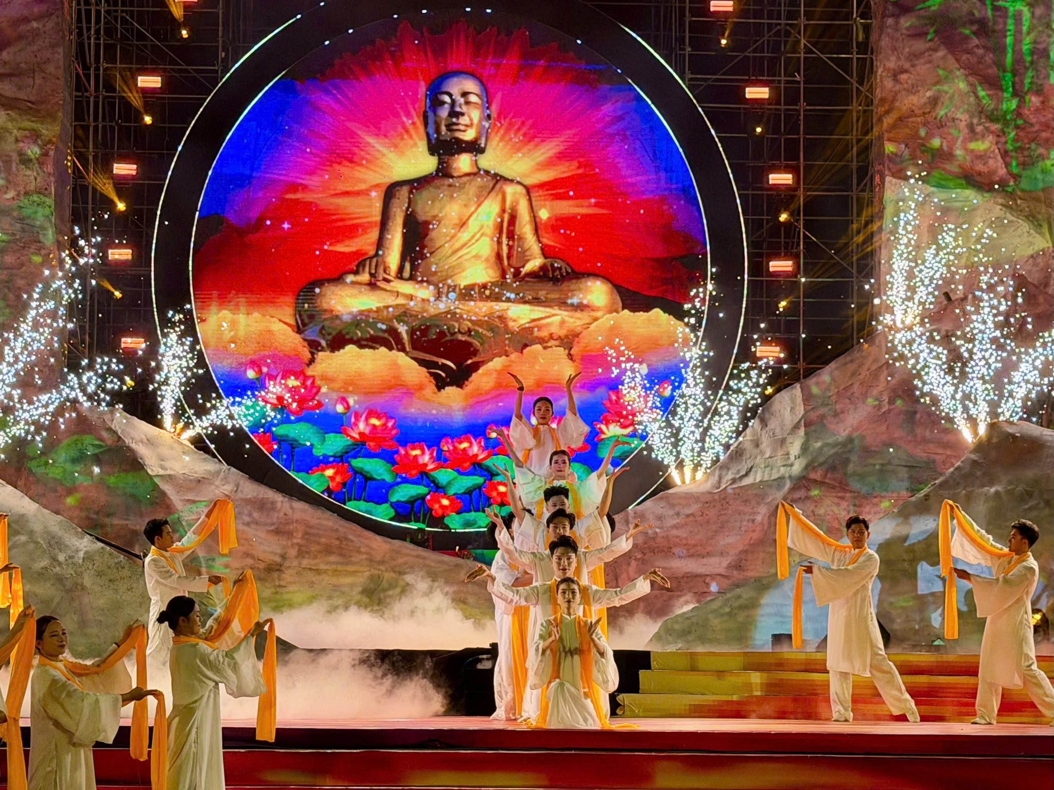 The program was sophisticatedly staged with many exceptional performances. It took the sacred symbol of Yen Tu as its core theme, recreating the journey of religious practice and enlightenment while spreading the Buddhist philosophy of Tran Nhan Tong. Through artistic language that combined music, stage design, and performance, the program vividly depicted the harmonious connection between Buddhist philosophy and real life, the unity of the Buddhist spirit and patriotism, thereby highlighting the spiritual values of the Truc Lam Zen Sect in the nation’s history.