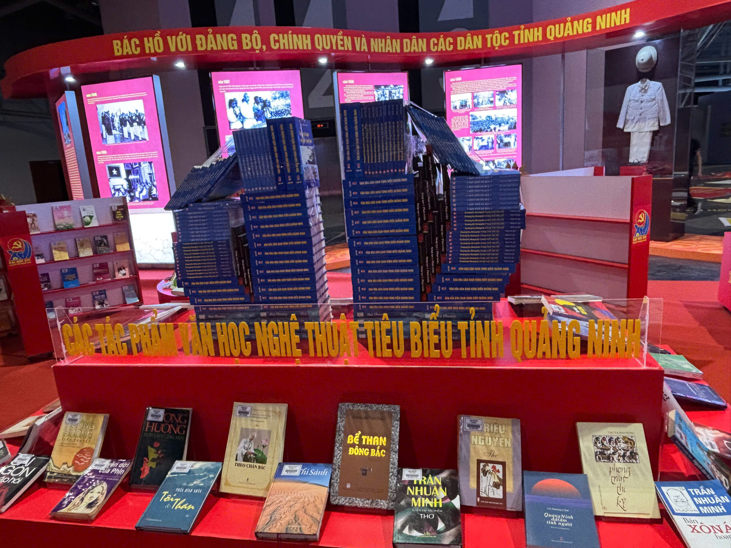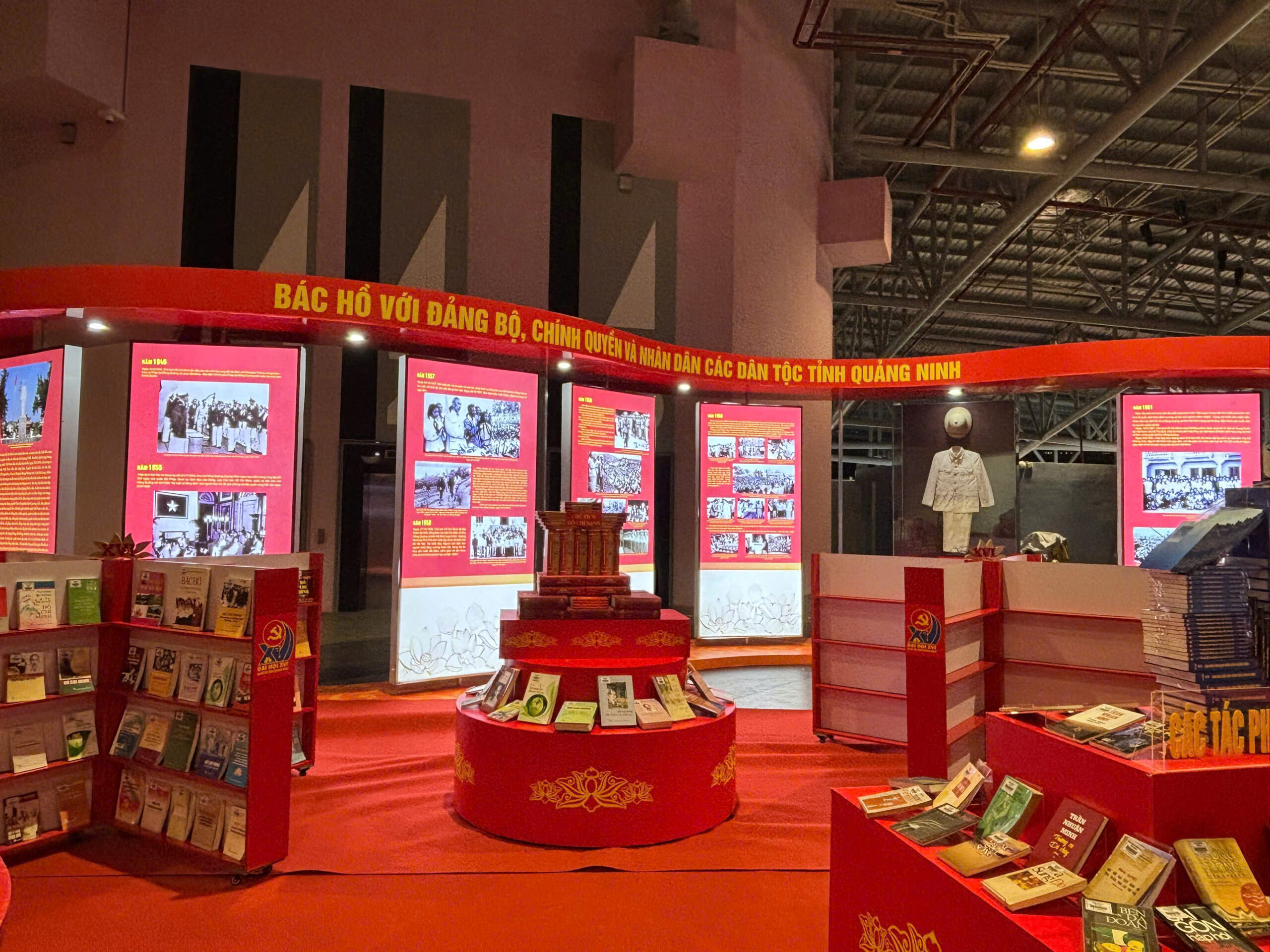 Điểm nhấn tại khu vực này là không gian xếp sách nghệ thuật với các mô hình biểu tượng như “Đại hội XVI”, hoa sen, “Cờ Đảng – Cờ Tổ quốc”, “95 năm”, “Lăng Chủ tịch Hồ Chí Minh”, tạo ấn tượng thị giác sinh động. Báo Quảng Ninh, Đài Phát thanh – Truyền hình Quảng Ninh cũng giới thiệu ấn phẩm đặc biệt “Đột phá và phát triển” gồm 252 trang, phản ánh hành trình lịch sử, những thành tựu đổi mới và mục tiêu phát triển trong nhiệm kỳ mới. Cùng với đó là khu vực trường quay thực tế ảo để công chúng có thể trải nghiệm làm phát thanh viên dẫn bản tin thời sự.