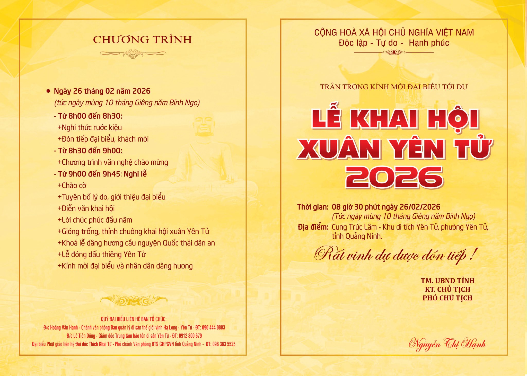 2026年安子春会开幕式将于2月26日(即丙午年正月初十)在广宁省安子名胜遗迹区竹林院正式举行。这是重要的文化信仰盛事,拉开了每年安子庙会季的序幕,吸引众多僧尼、佛子、民众及八方游客前来朝拜、春游。